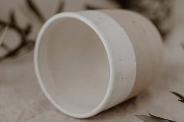 Schlicht und minimalistisch mit natürlichen Farbtönen und einer feinen Blindprägung „Glücklich“ – ideal für alle, die handgefertigte Keramik und unperfekte Perfektion schätzen.
